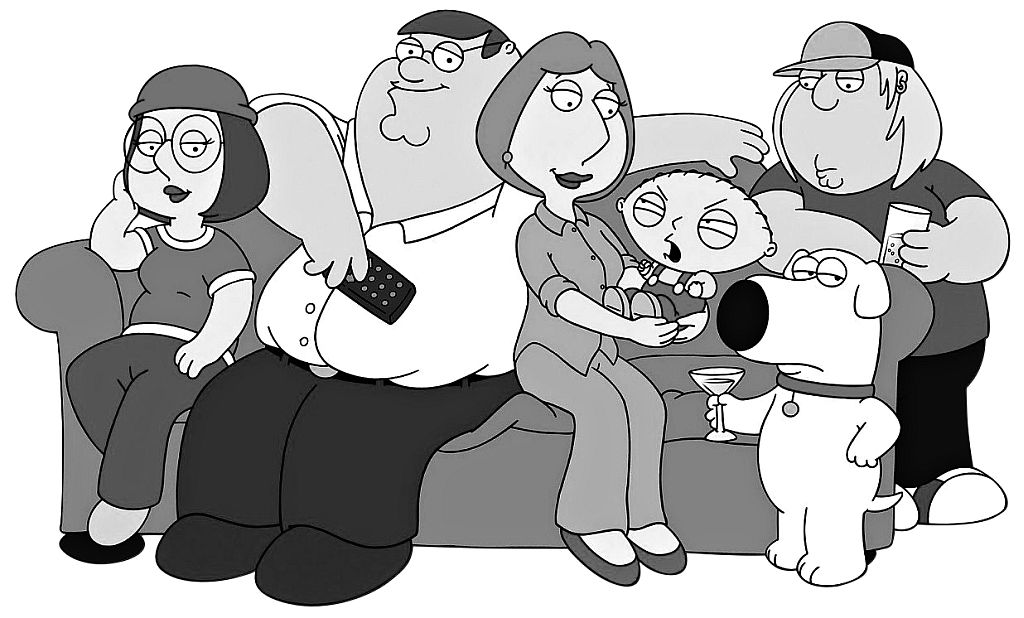 Isso sem falar no caçula, Stewie, um bebê com o senso de humor de um ditador nazista, que não hesita em se referir à própria mãe como "bêbada nojenta" e ao pai como "gordo burro".
