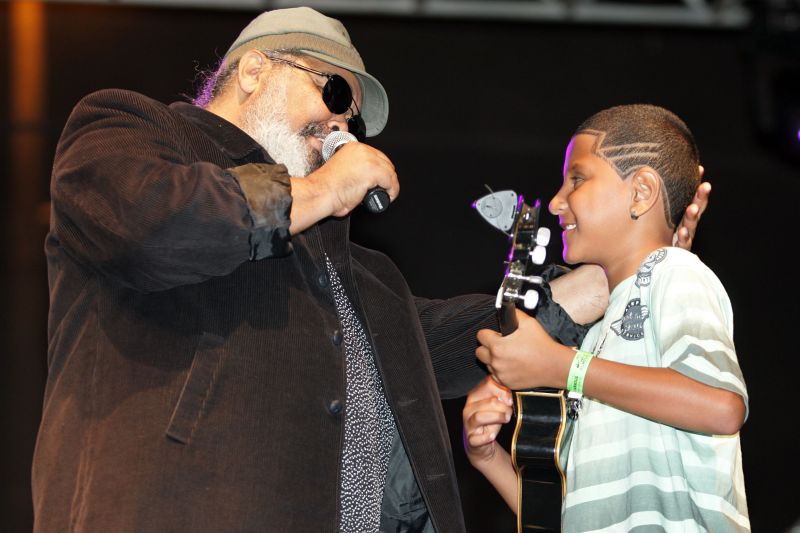 Chegar perto e garantir uma foto ao lado do mestre do samba Jorge Aragão já seria um ótimo negócio para os parnanguaras Francisco Espíndola, de 11 anos, e Gabriel Correa, de 10, que descobriram cedo o talento e a paixão pela sonoridade contagiante do cavaquinho. Mas, além de um carinhoso registro fotográfico, eles ganharam o privilégio de dividir o palco com o sambista carioca, no show realizado em Paranaguá, no último sábado antes do carnaval. E não decepcionaram o público, dando show no instrumento e arrancando aplausos dos presentes.
