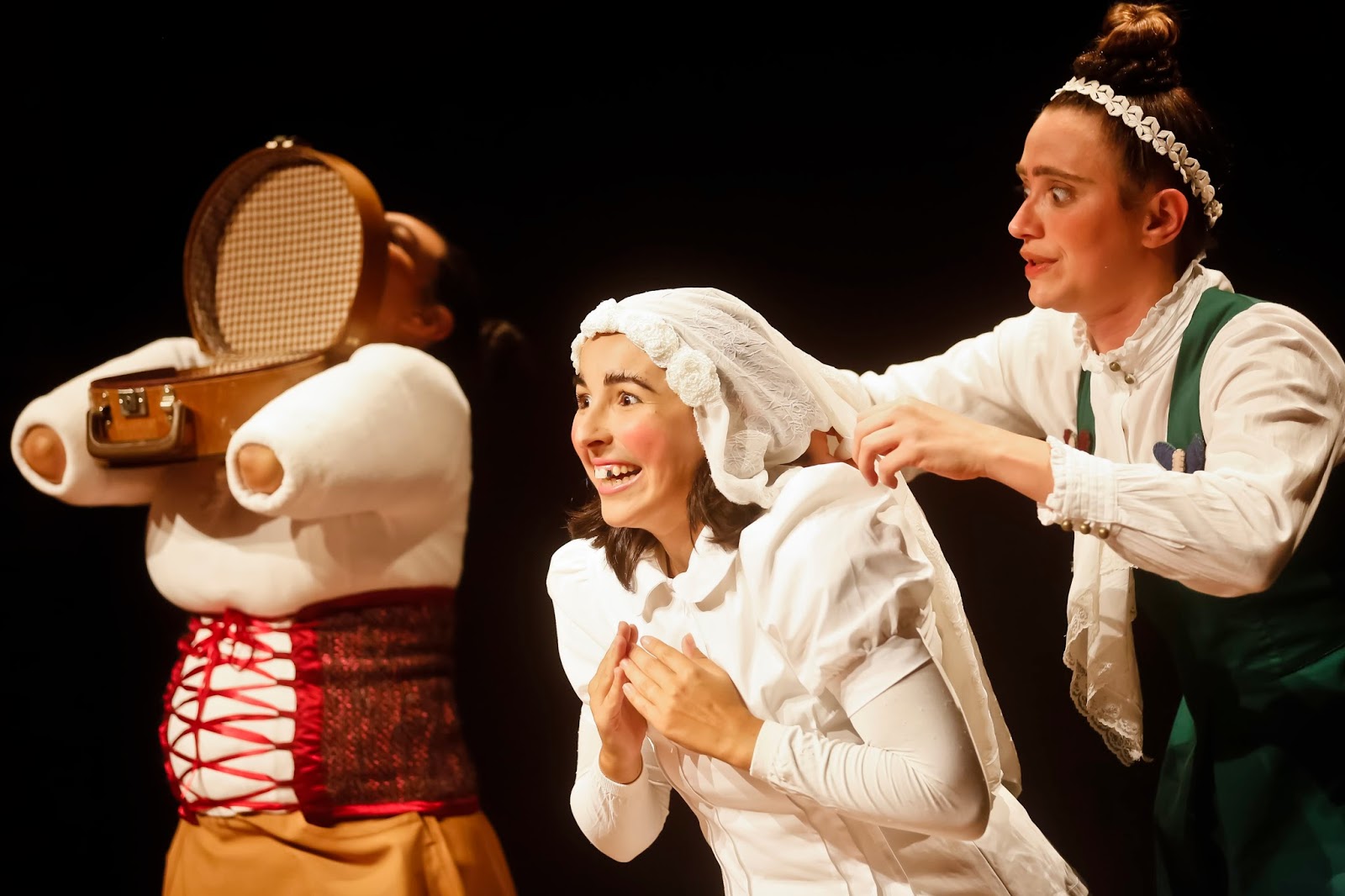 No ritmo da comédia trazido pela companhia catarinense, o público é absorvido para dentro da encenação de forma quase hipnótica. Com suas falas direcionadas a um ou outro espectador, as três atrizes, únicas em cena além de um trio musical, conquistam pelo olhar os demais personagens de que precisam para compor os momentos de reunião. E são membros do enredo importantes, sem os quais a peça não anda – mas elas conseguem atrair gente ao palco com uma sedução nada impositiva.