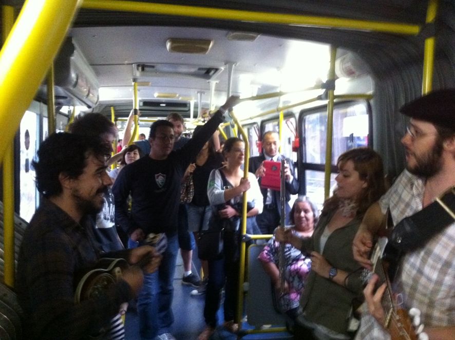 Mônica com sua flauta e voz doce que encantou os curitibanos que ali no ônibus estavam. Murilo com seu sorriso no rosto, acompanhado de um ukulele alternava o espetáculo cantando e declamando textos poéticos que davam introdução à música. Isaac deu toque especial à apresentação com seus solos de guitarra.