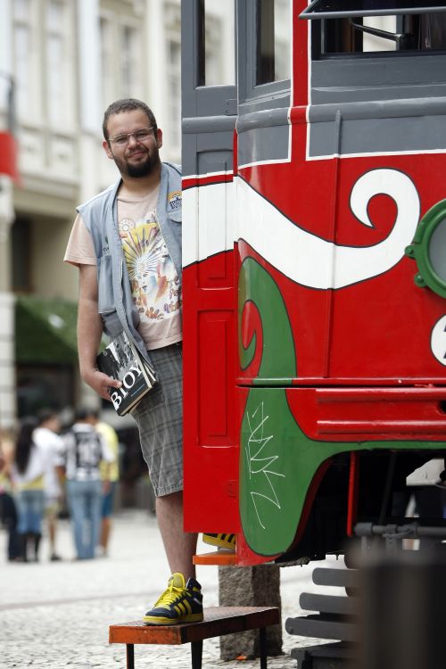 "Vamos conversando, conhecendo as pessoas e perguntando do que elas gostam. Aí consigo definir um padrão e sugerir algo", diz o rapaz, identificado com um colete bege que leva o emblema da Fundação Cultural de Curitiba, órgão responsável pelo Bondinho da Leitura.