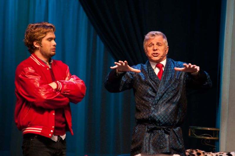 Como não seria possível viajar com a parafernália do musical, a versão que chega ao Guaíra no sábado é a adaptação da própria peça, e tem Sandro Christopher como Albin. Completam o elenco Jorge Maya (com Jacó), Davi Guilhermme (Lourenço), Carla Martelli (Anne), Eliana Rocha (Xavière), Carlos Leça (o sogro, Dieulafoi), Keila Bueno (Madame Dieulafoi) e Gustavo Klein (Francis, Mercedes e Cagelles).