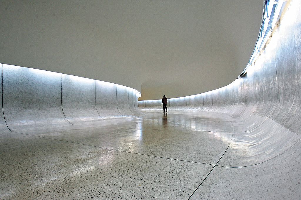 No Espaço Niemeyer, no térreo, só um segurança que passava apressado fazia companhia ao arquiteto autor do projeto do MON, solene em grandes fotos na parede. Uma outra monitora, baixa e de óculos, passou olhando para cima fazendo estranho gargarejo.