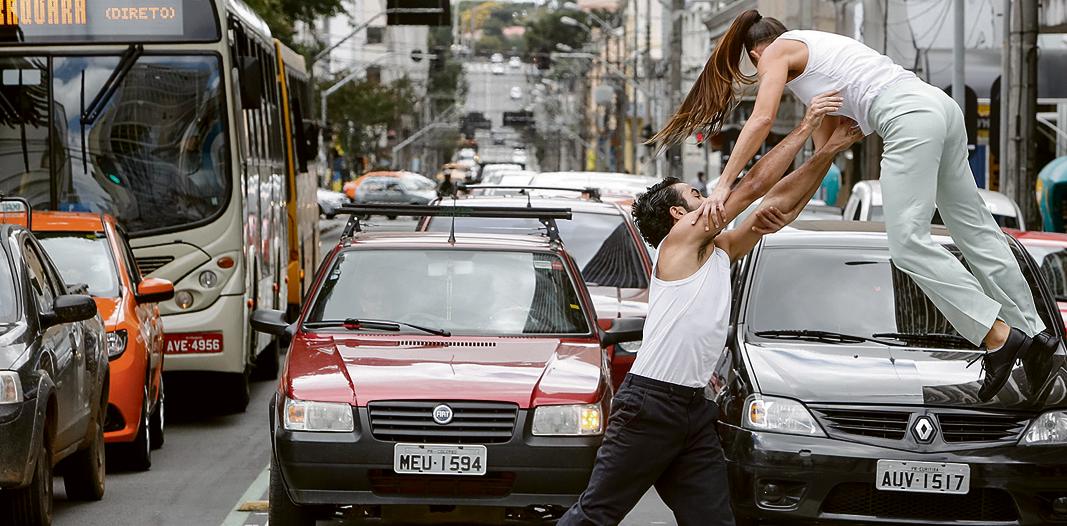 Bailarinos especialistas numa linguagem por vezes árida decidem parar o trânsito de Curitiba com sua arte.