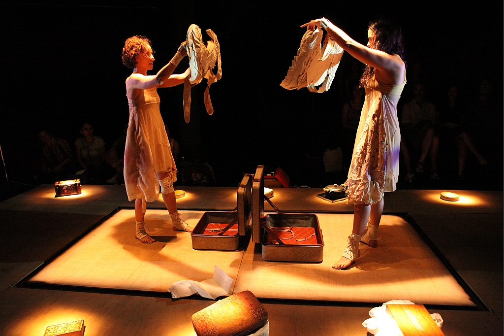 Por um lado, no jogo teatral assumido pelas atrizes em constante movimento entre o atuar e o apresentarem-se a si mesmas, como se viu em Rainha[(s)] , na Mostra Contemporânea 2009. Por outro, nas estratégias de um teatro ritual, como fez em VemVai O Caminho dos Mortos, apresentado no Filo 2008. Em ...Bruta Flor recebe-se um envelope. E o convite verbal a responder à encenação com as próprias lembranças e emoções. GGGG