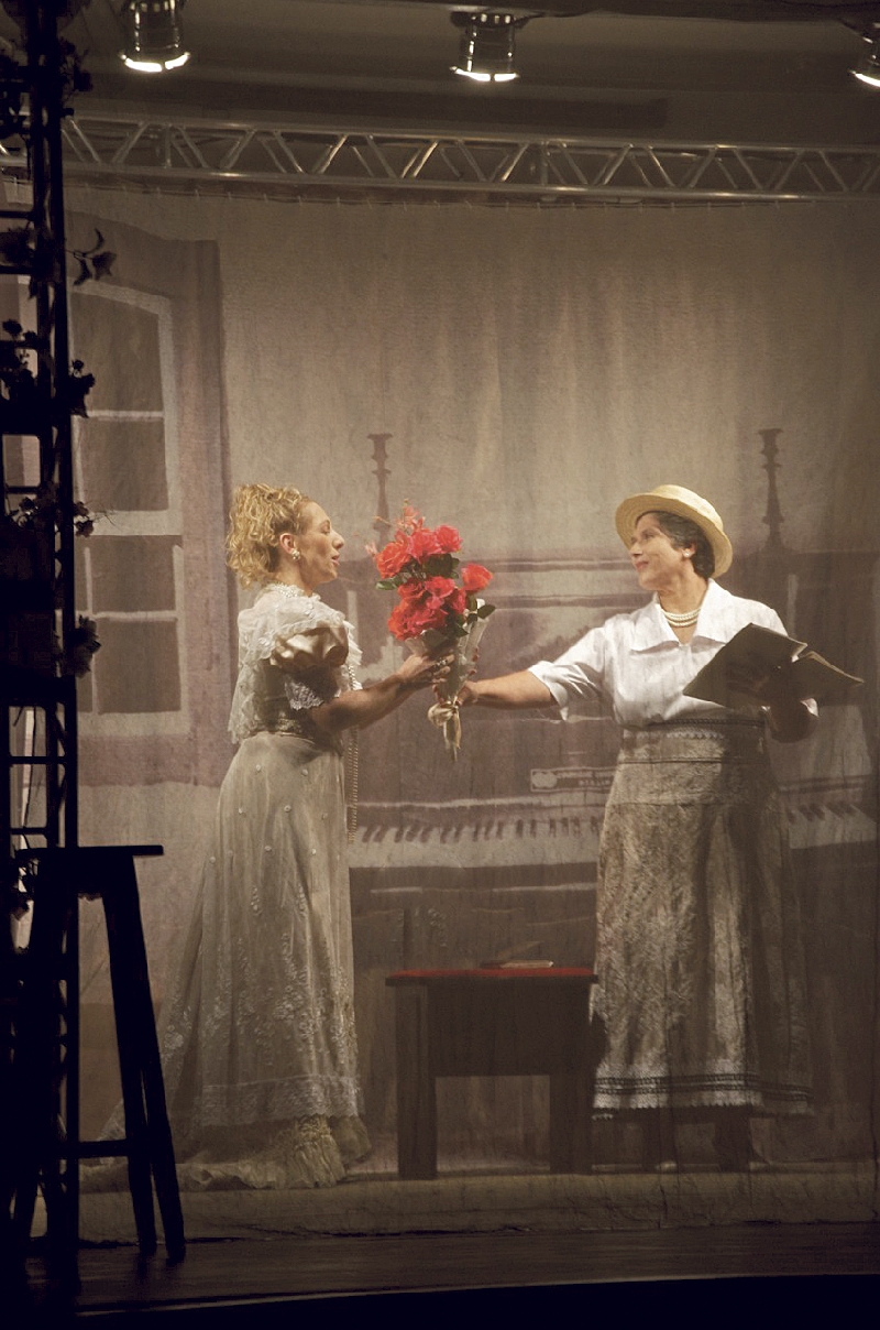 Mini Auditório do Teatro Guaíra. Enquanto a competente atriz Vilma Fernanda dizia "Meu coração fala uma língua estranha", ao fundo se ouvia "No dia em que eu sair de casa minha mãe me disse...", aquela canção brega-atroz da dupla Zezé di Camargo & Luciano, que se apresentava ao lado, no Guairão. E foi ao som do repertório de lamentos em altos decibéis que Flores Dispersas, arrojada montagem sobre a vida de Júlia da Costa, considerada a primeira poeta do Paraná, teve que se erigir e se sustentar.