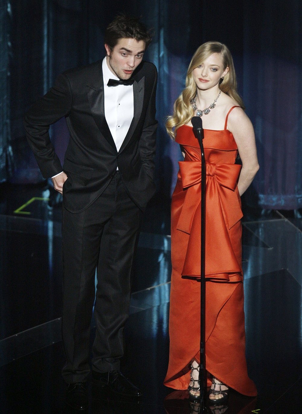 "Crepúsculo" não recebeu nenhuma indicação ao Oscar 2009, mas teve um representante no palco do Oscar 2009. Robert Pattinson, o vampiro Edward, apresentou ao lado da atriz Amanda Seyfried os filmes que marcaram o romance nas telas no ano de 2008.