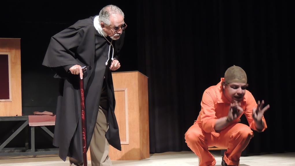 Em meio a toques de absurdo e farsa, o promotor se coloca como advogado de defesa do pobre coitado – e os dois acabam se confundindo em meio ao espetáculo.