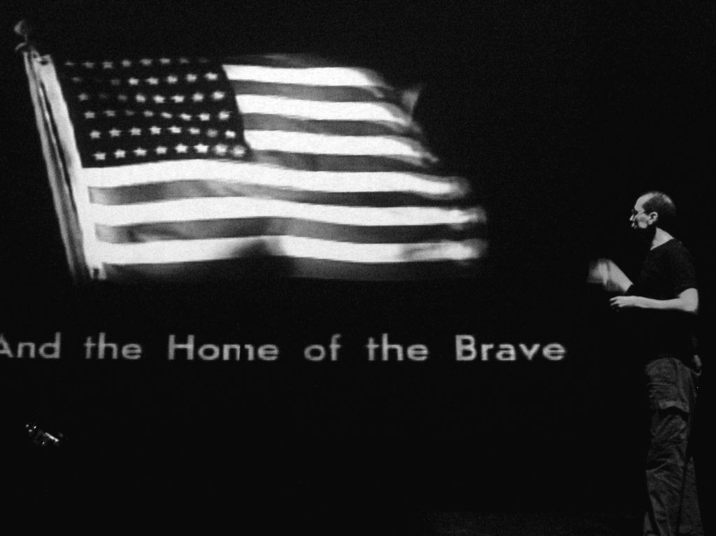 Sua ação iconoclasta começa pela bandeira de 13 listras e 50 estrelas. Ricky enfatiza a força do seu simbolismo na cultura ianque, ensinando a platéia a dobrar a bandeira há um jeito correto e é algo que todo americano aprende enquanto, ao fundo, um vídeo ilustra o processo passo-a-passo repetidamente, dando ao espectador uma boa idéia de como aquilo é martelado nas mentes.