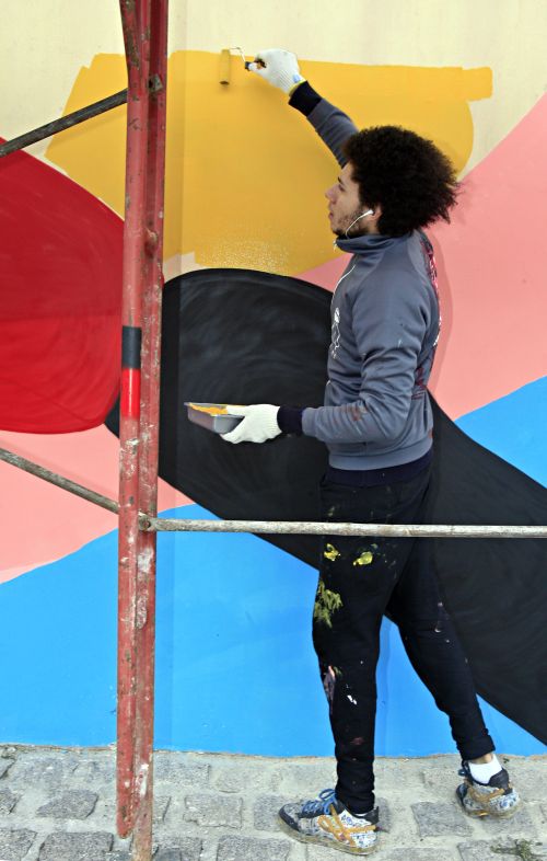 Guimarães se inspirou também em uma de suas obras em tela, Bekokolare, que significa "a grandeza não é o que se vê com os olhos", em um dialeto africano. "É isso que pretendo mostrar no painel. Não o grandioso que impressiona, mas a essência." O artista não tem ideia de quantas cores usou. "Vou misturando umas a outras e nem conto. Estou numa fase bem colorida. No começo do meu trabalho, não usava tantos tons." Ele, aliás, começou cedo: expôs pela primeira vez aos 16 anos, em Maringá. Fez sua primeira individual um ano depois, no bar Era Só o que Faltava e participou de uma coletiva no Museu Oscar Niemeyer (MON), em 2010.
