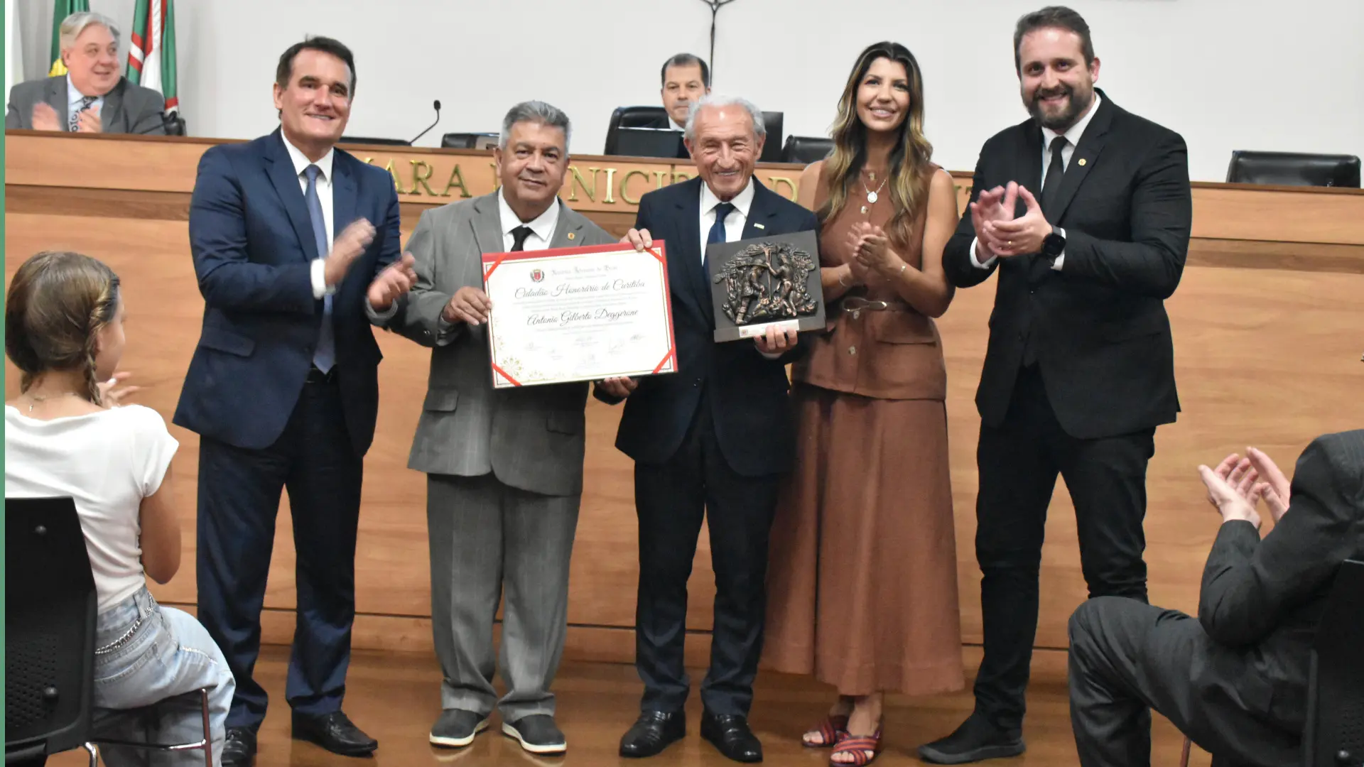 Uma noite repleta de homenagens e marcada por profunda emoção. Assim foi a cerimônia de entrega do título de Cidadão Honorário de Curitiba, concedido pela Câmara Municipal ao Presidente da ACP, Antônio Gilberto Deggerone. O evento reuniu autoridades, associados, familiares, colaboradores e imprensa para celebrar o reconhecimento de sua contribuição ao desenvolvimento econômico da capital, sua atuação exemplar no associativismo e sua postura sempre pautada pelo diálogo com o poder público e com a sociedade.