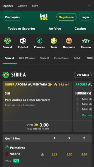 Muito conhecida entre os fãs de bets, a bet365 também cobre boa parte dos campeonatos brasileiros. Isso inclui o Paranaense e o Campeonato Carioca, com mercados pré-jogo e ao vivo disponíveis durante os torneios.