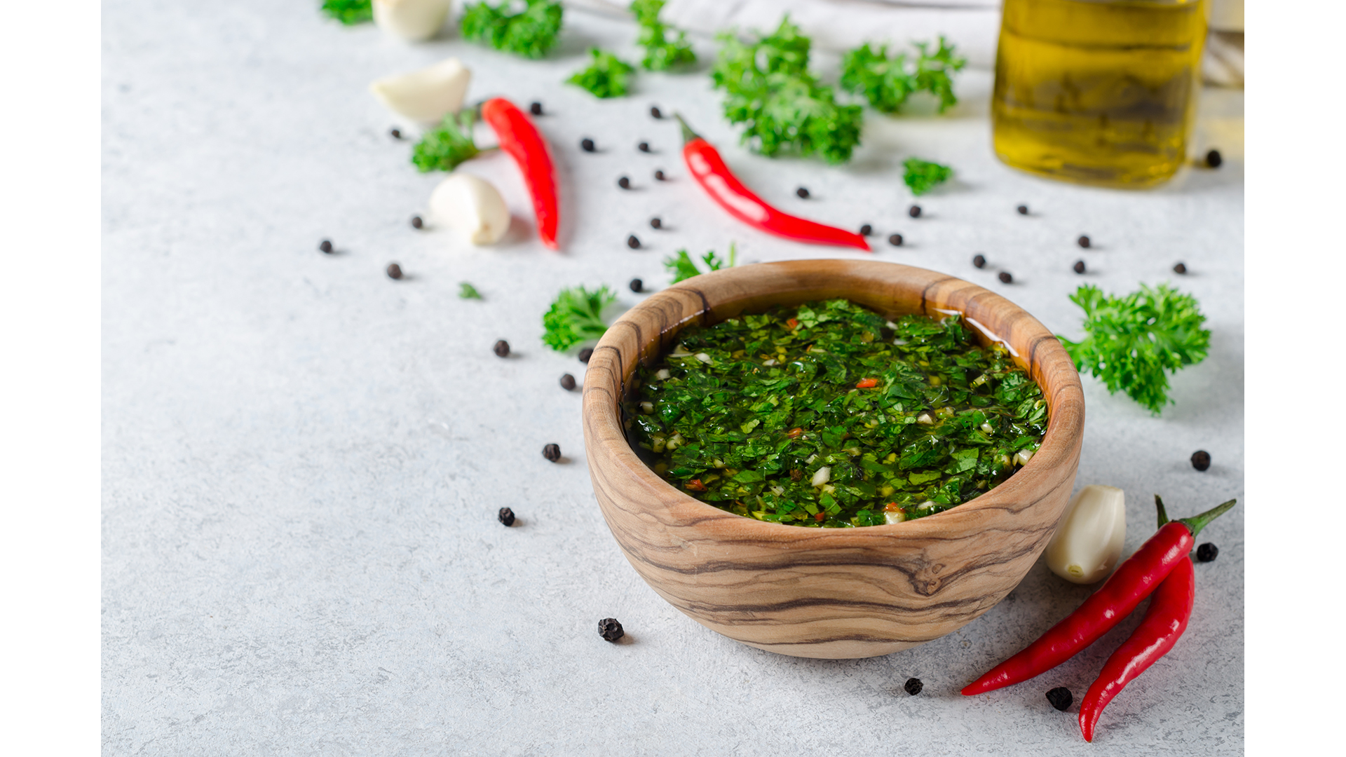 Por isso, é essencial selecionar bem os ingredientes — ervas frescas, azeite de oliva de boa procedência, vinagre de qualidade e pimentas —, macerar tudo em um pilão na hora e servir o molho chimichurri fresco com a carne. Se a carne for preparada em uma tradicional parrilha argentina, ainda melhor.