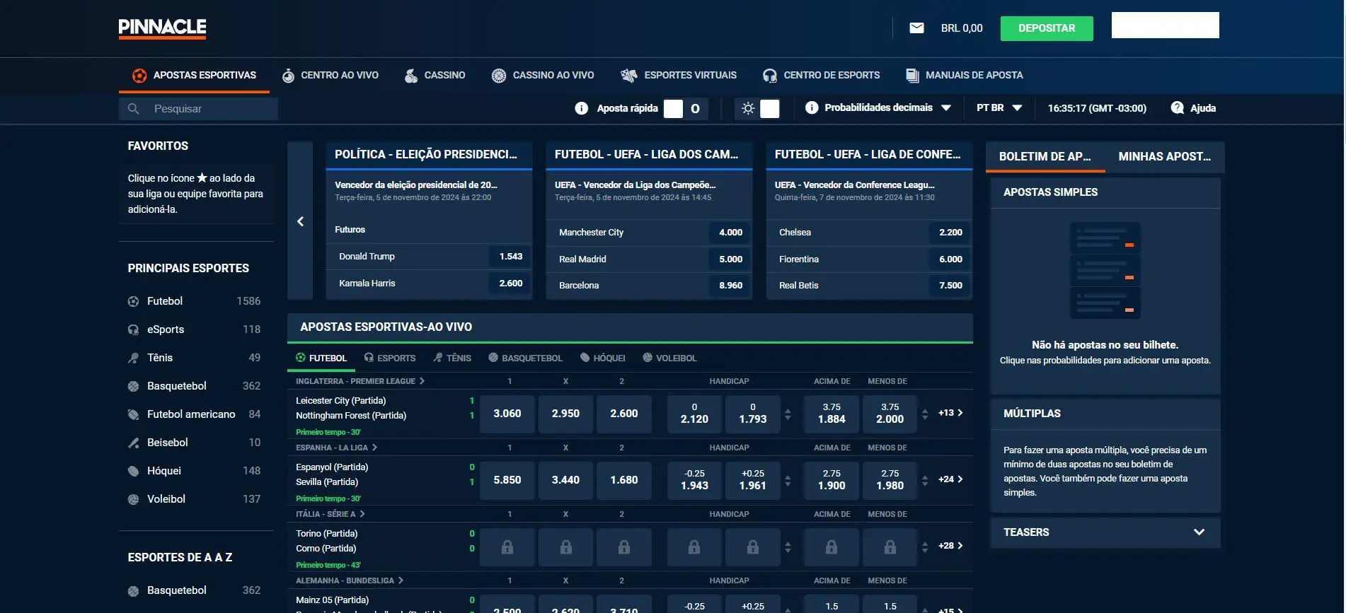 Clique aqui para apostar na Pinnacle