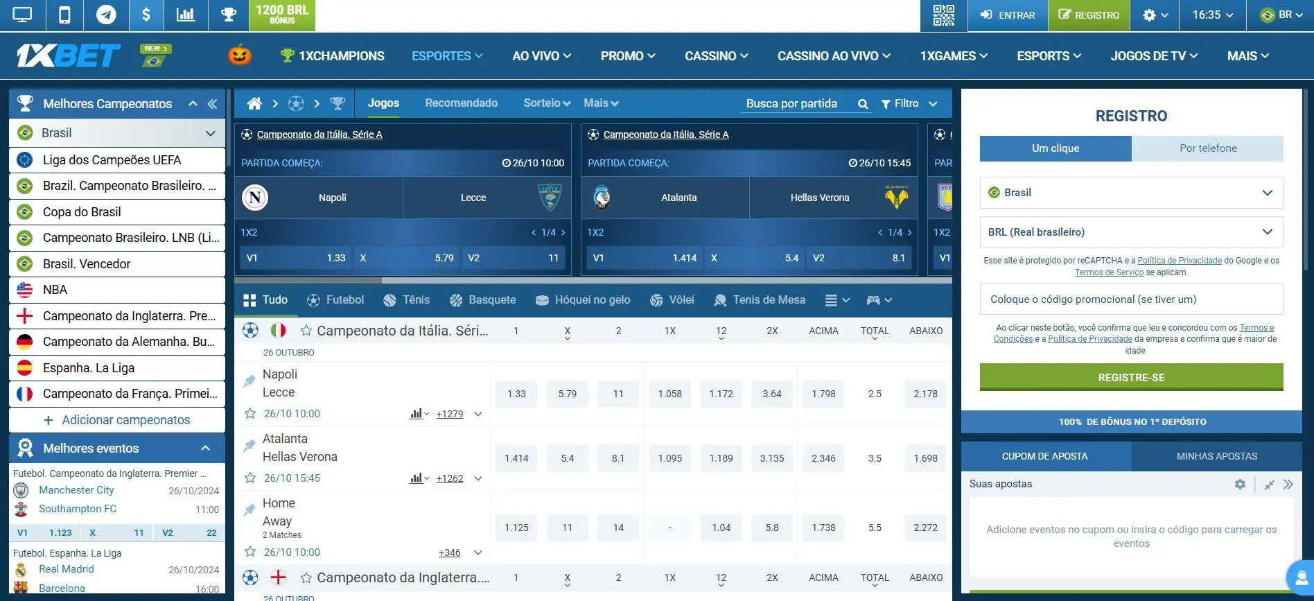 O site da 1xBet também é um dos poucos que tem aplicativos para Android e iOS, permite o cadastro com apenas um clique, oferece cobertura ao vivo e tem mais de 50 esportes listados em sua plataforma.