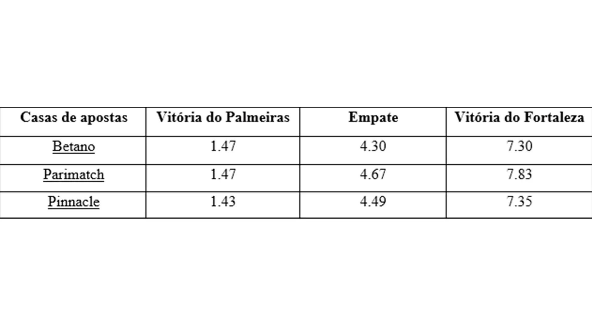 Não vamos adentrar no detalhe de como calcular odds de apostas ou algo desse tipo. O nosso objetivo aqui é só trazer um panorama geral sobre o que é uma odd de aposta. Para alcançar essa meta, pegamos como exemplo um jogo do Brasileirão Série A.