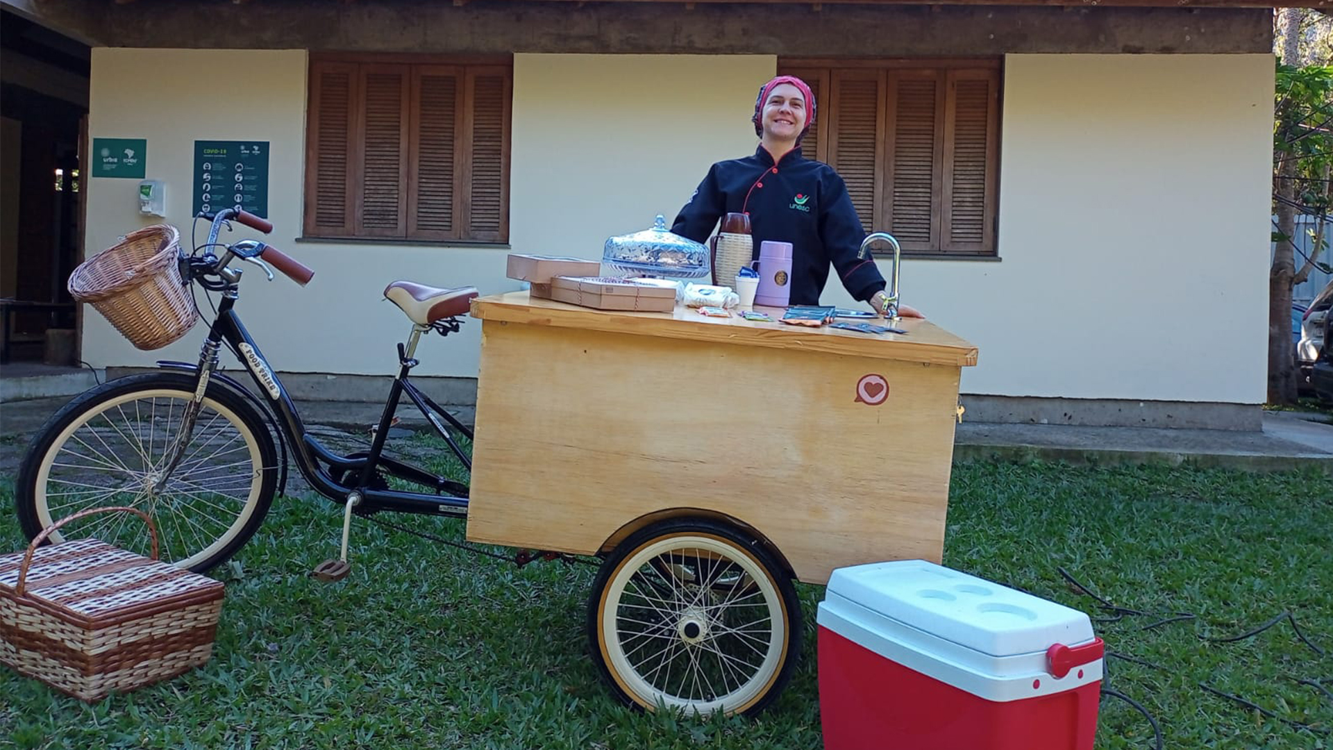 “Fechamos esta parceria para oferecer nossas refeições junto à Trilha do Rio do Boi. Pensamos em algo diferente e que nos daria suporte para as vendas, então surgiu a ideia da bicicleta. O equipamento é todo adaptado para a venda de comida: tem uma caixa, que serve de bancada, ombrelone (guarda sol), que ajuda a proteger, e uma pia acoplada, para o caso de a gente precisar”, descreve Lauren.