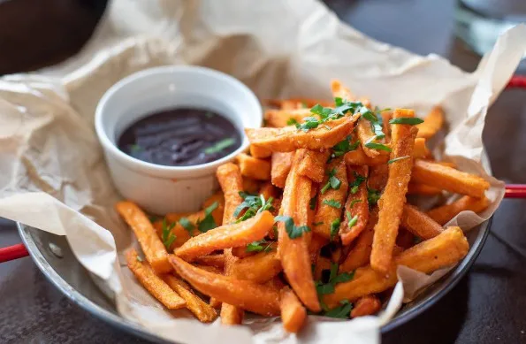 Para quem busca uma opção mais saudável, é possível adicionar em sua dieta a batata doce frita. A batata doce é mais saudável que a batata tradicional e contém mais vitaminas e nutrientes, além de ter um sabor mais docinho que a mais popular.