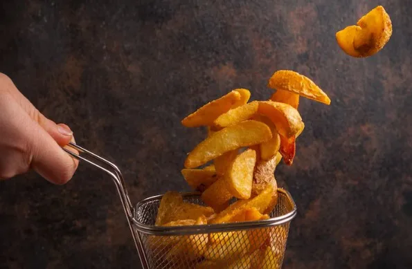 - Frite as batatas por 2 a 3 minutos, ou até que estejam douradas e crocantes.