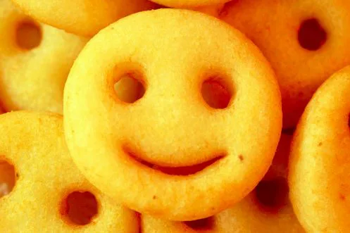 Esta fofura é um tipo de batata frita que entrega um sorriso em sua forma. Feitas com batatas cortadas em círculos e desenhadas.