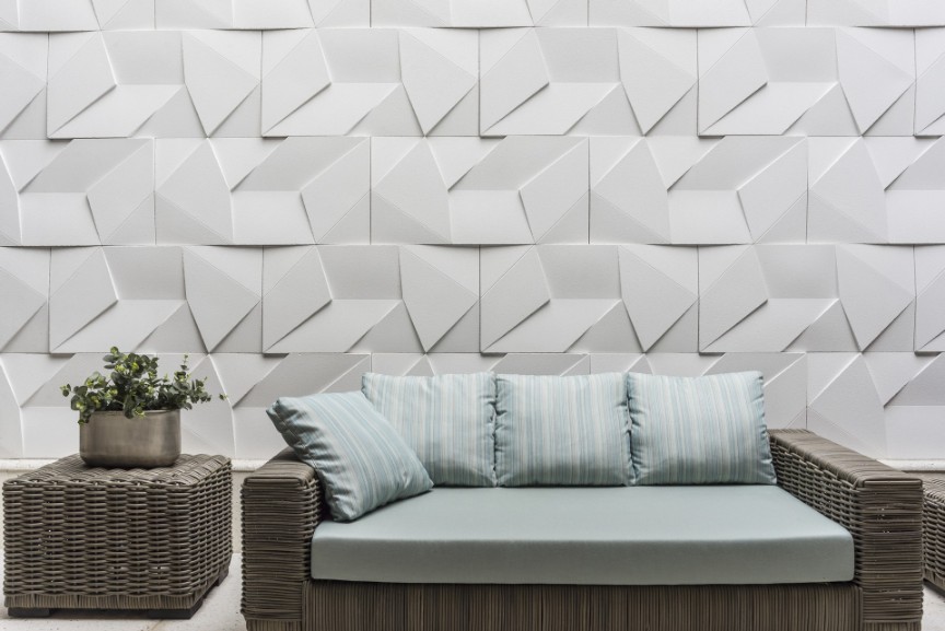 Muito versátil, o revestimento 3D pode ser aplicado em cômodos internos e ambientes externos de projetos residenciais e comerciais.