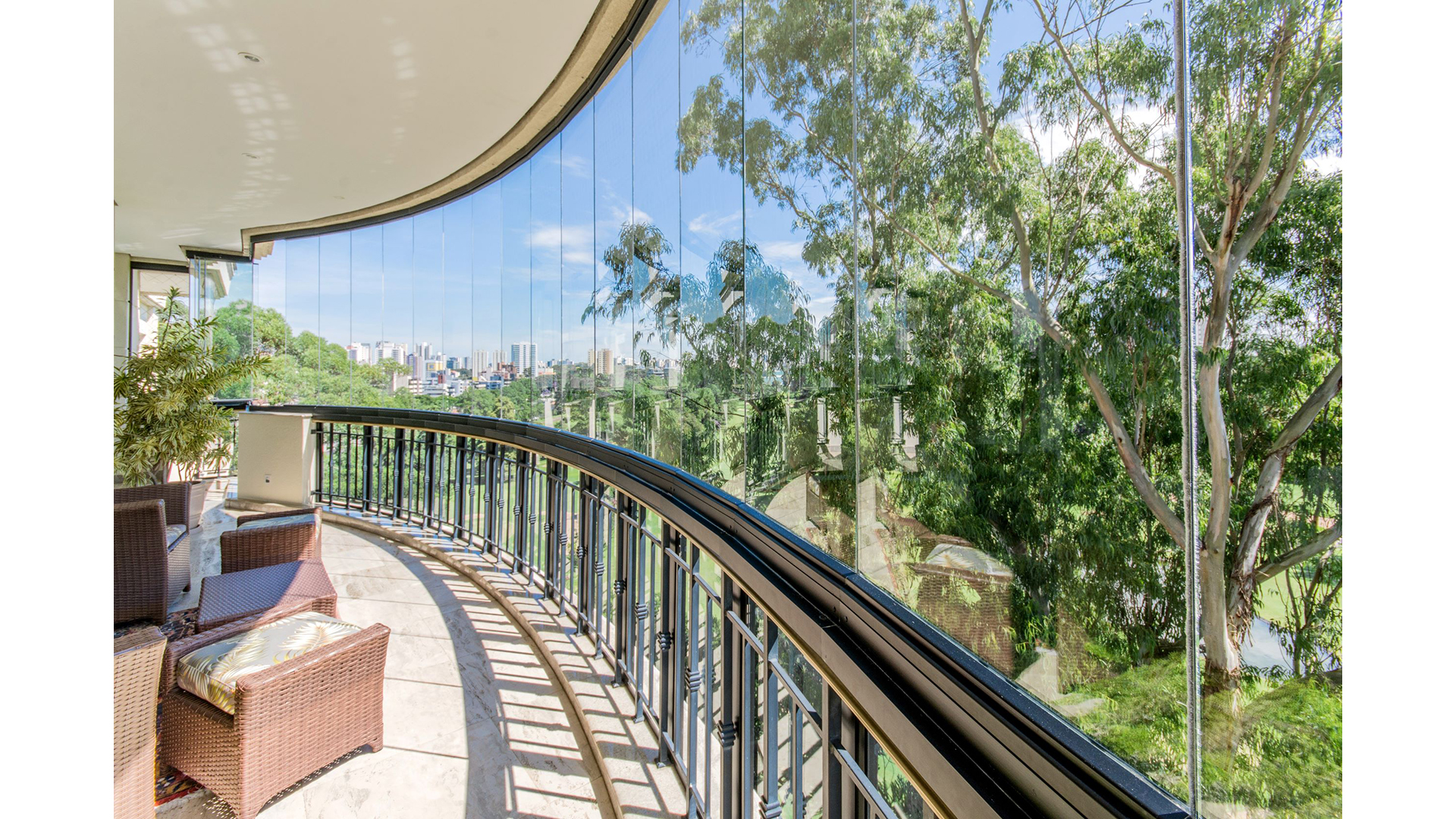 Assim, em dias muito quentes, é possível abrir os vidros ao máximo permitindo a entrada de vento; já em dias chuvosos e frios, basta fechá-los. Como o sistema não possui esquadrias ou vidros sobrepostos, a vedação é eficaz e garante total proteção contra chuvas e ventos.