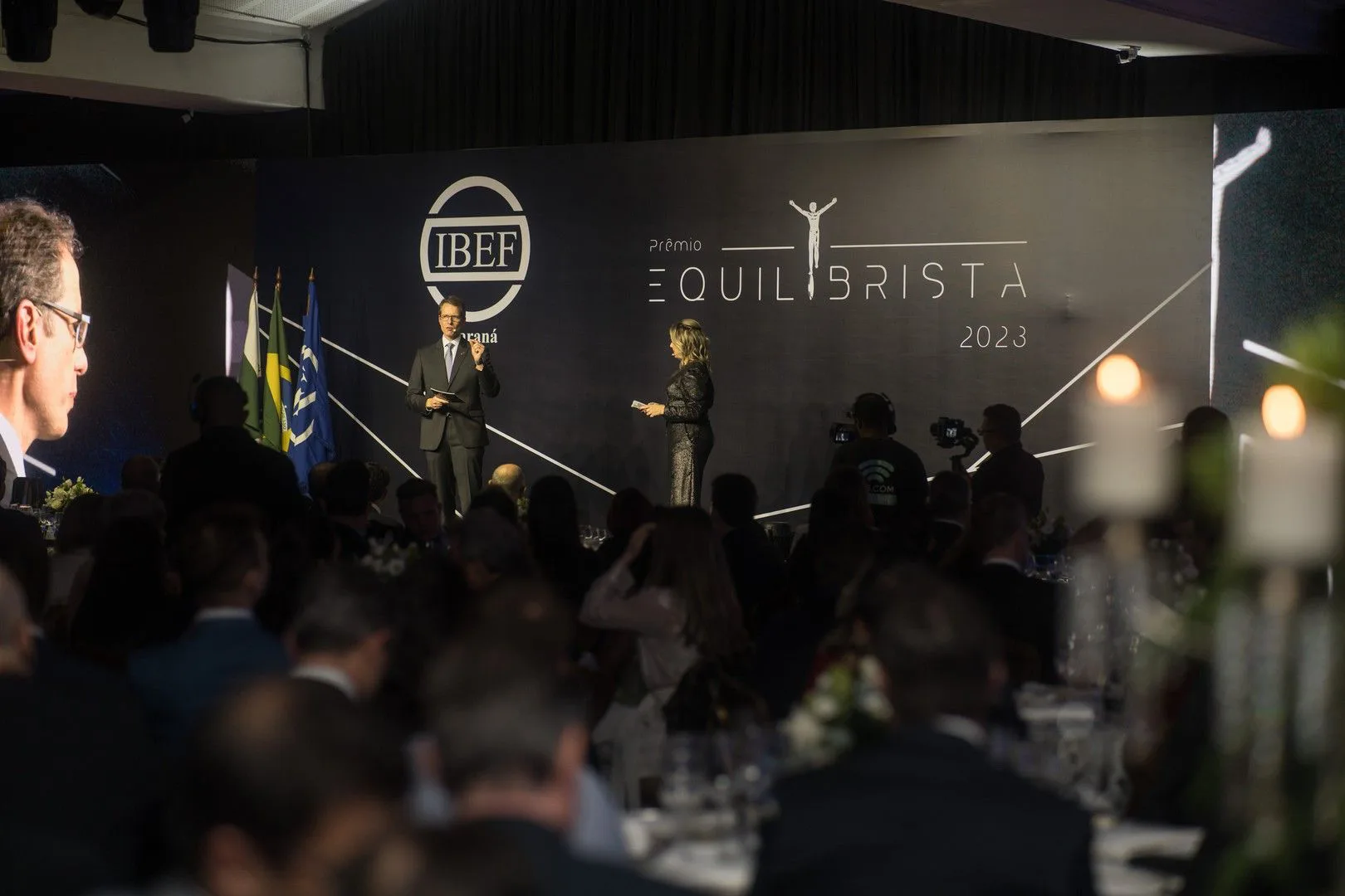 Para chamar os vencedores ao palco, Ricardo Pereira, presidente do IBEF Paraná, contou com a mestre de cerimônia e apresentadora, Giselle Suardi. Juntos, abriram o evento celebrando mais uma edição para reconhecer os profissionais da área, entre gestores, futuros líderes profissionais, empresas e organizações dos mais variados setores.