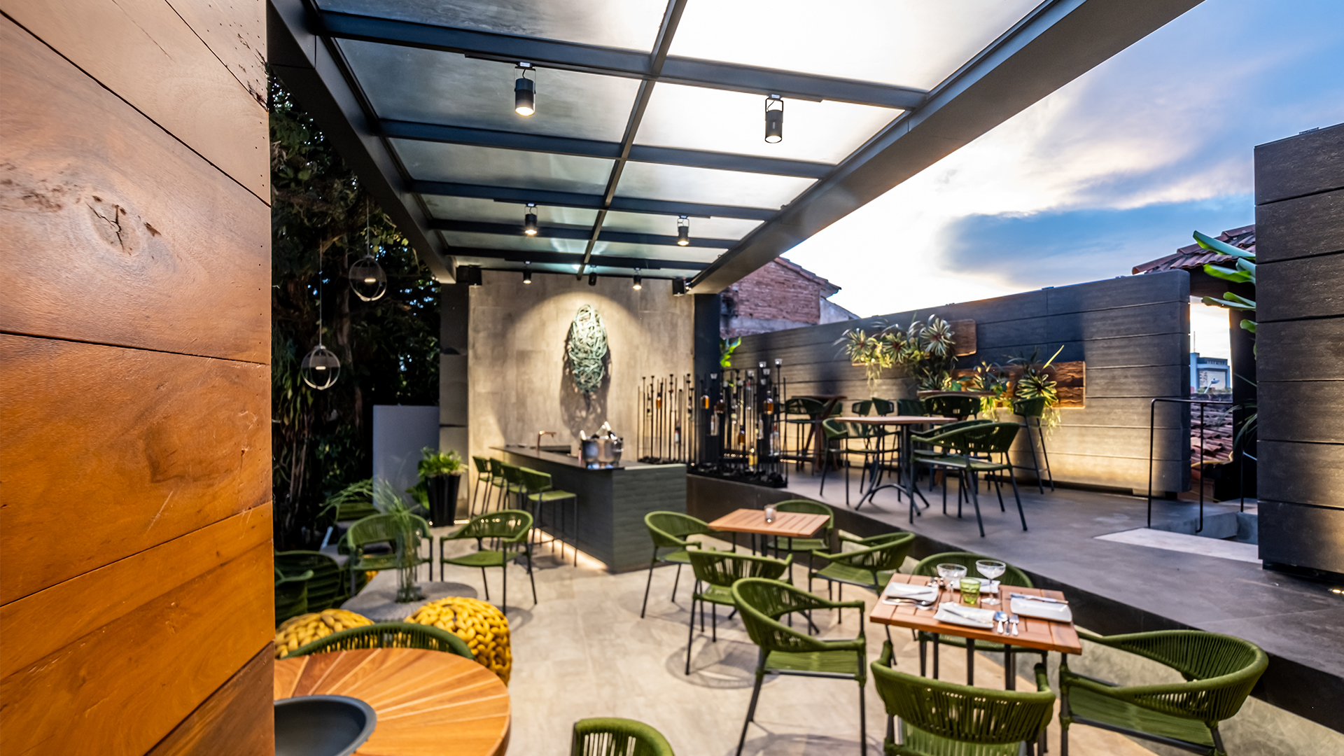 Um dos pontos altos da Casacor Bolívia foi o Restaurante Mirador, de autoria dos renomados Harold Anzoategui e Oscar Coronado. Explorando a disposição de mesas ao ar livre e a vegetação como composição e arte, o espaço contou com exclusividades da Lovato.