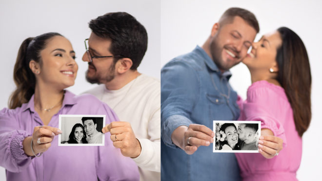 A história da Lariessa Berberi Lemberg e Thiago Graffete Lemberg, que estão juntos há 19 anos, é estilo conto de fadas. A primeira aliança de compromisso do casal foi Pratafina. “Na verdade ele primeiro me pediu em casamento e, depois, em namoro”, conta Lariessa. “Então ele me deu uma aliança Pratafina”, disse ela. “A Pratafina está presente em todos os momentos da nossa vida”, completou Thiago.