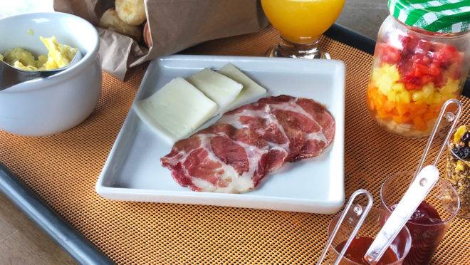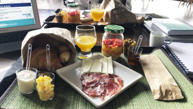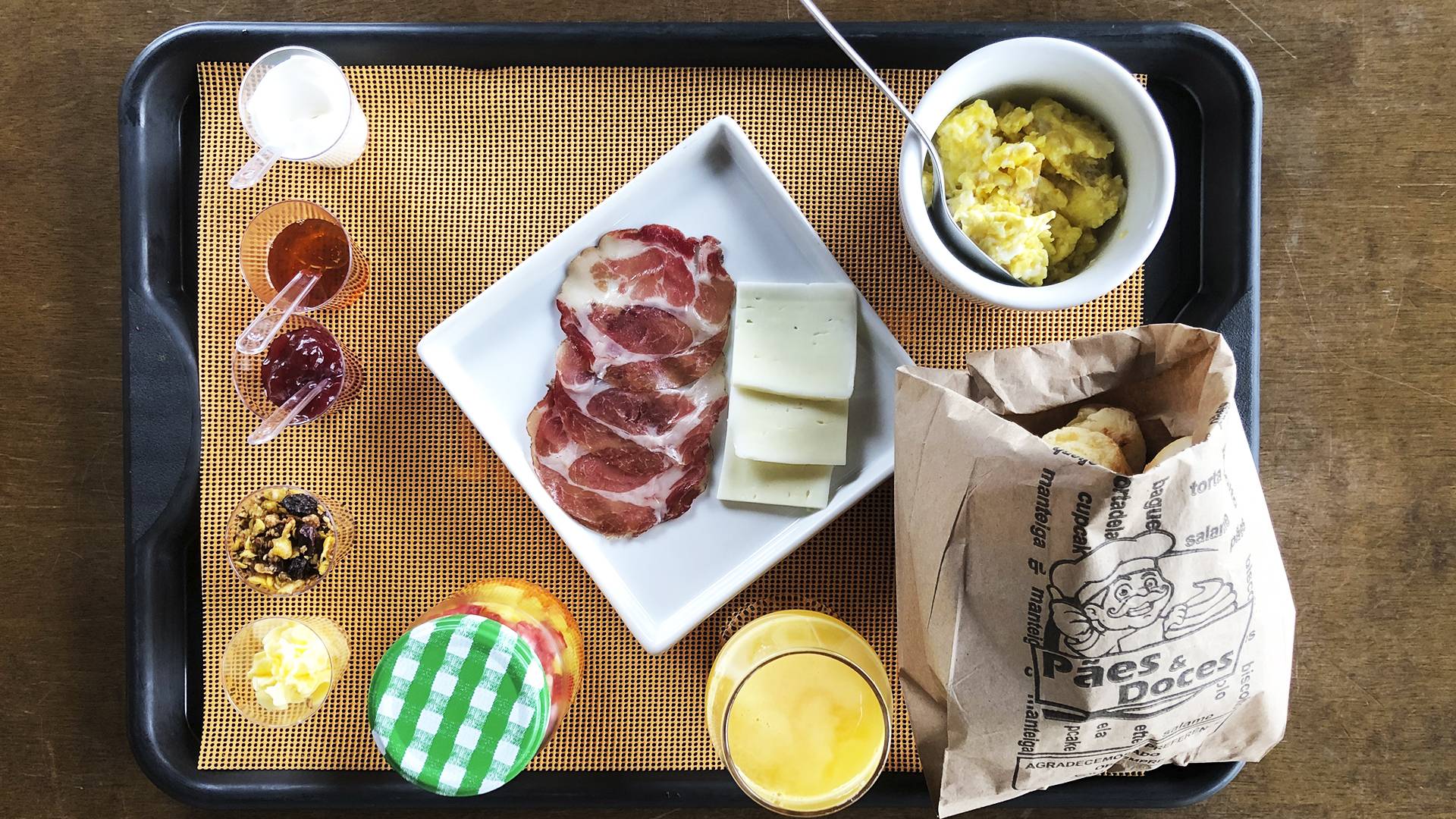 Já as opções doces, o café tem bolo de chocolate, bolo do dia, cookie, brownie com calda de chocolate, cheesecake com calda de frutas vermelhas ou calda de limão siciliano. Mas, as alternativas não para por aí. Quem quer um café especial, como de hotel, só que do Victor, há ovos mexidos, pão francês, mini croissant, broa integral, pão de queijo, manteiga, geleia, queijo de búfala, presunto copa, salada de frutas, iogurte natural, granola e mel.