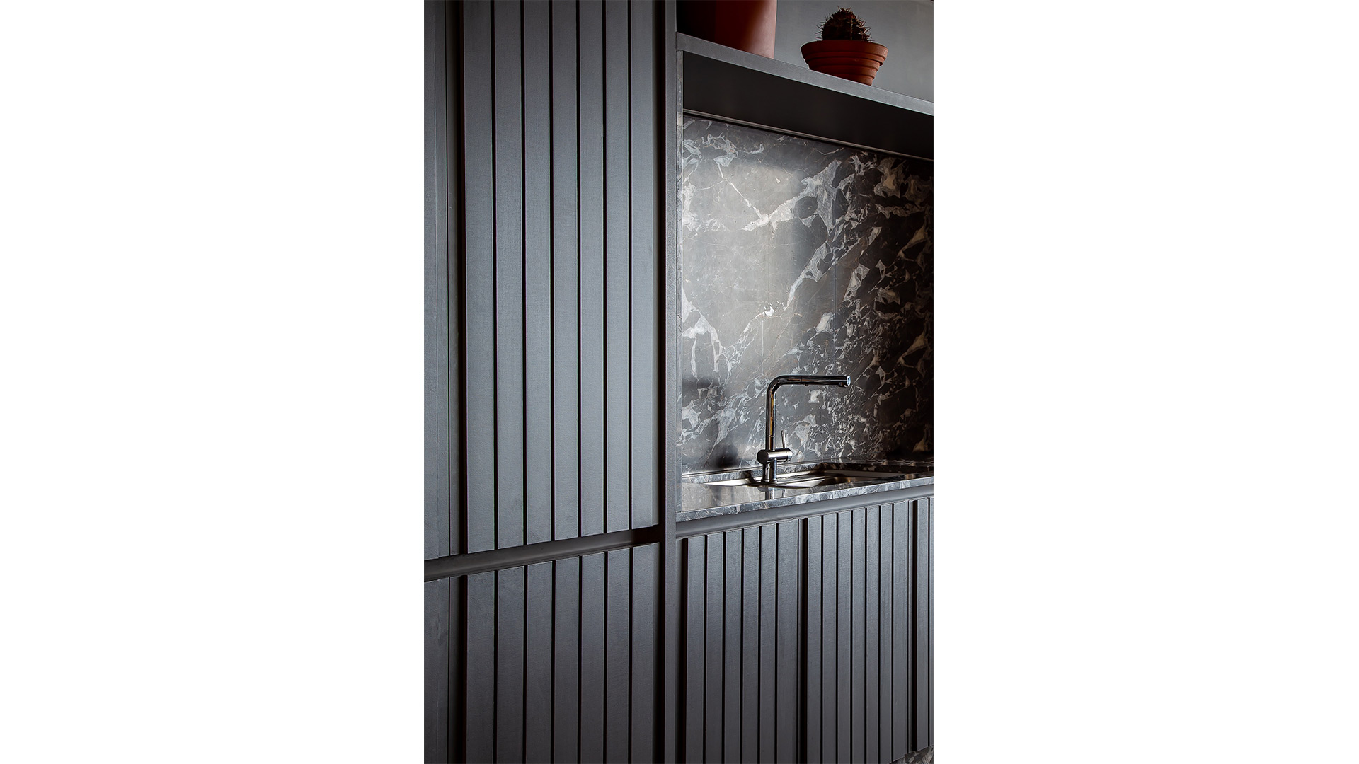 Para conhecer o refúgio urbano do Edifício 360°, começamos a apresentação do projeto pela cozinha, cuja ideia era que se tornasse o coração da casa. O desafio dado à arquiteta foi cumprido graças à customização das portas, que ganharam sobreposição de chapas no acabamento Cenere da SCA. O visual clássico escolhido trouxe uma identidade única ao projeto, ousado e exclusivo.