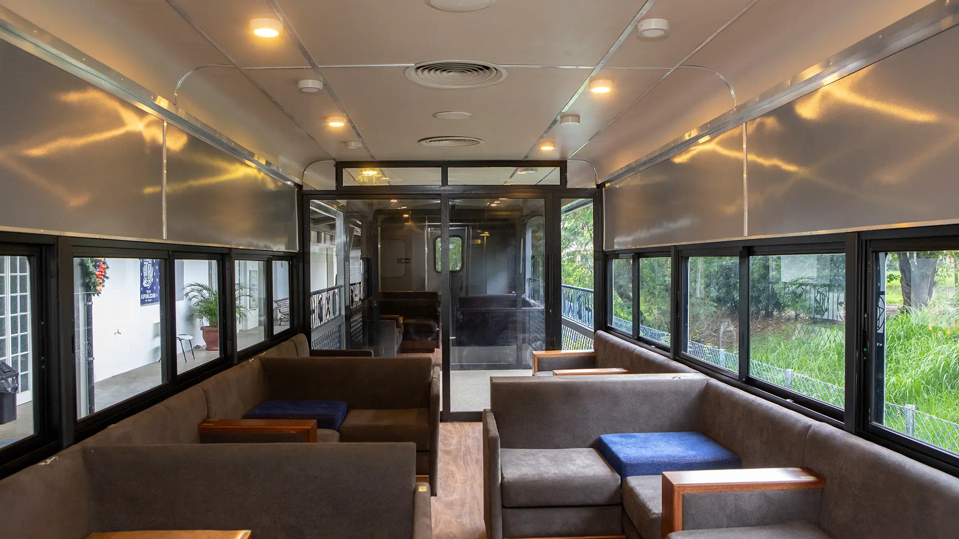 Os passageiros vivenciam uma viagem sobre trilhos em uma experiência exclusiva, divertida, repleta de surpresas e boas histórias para contar.