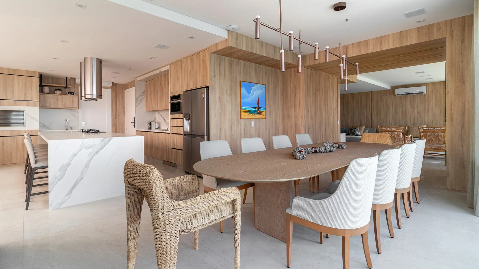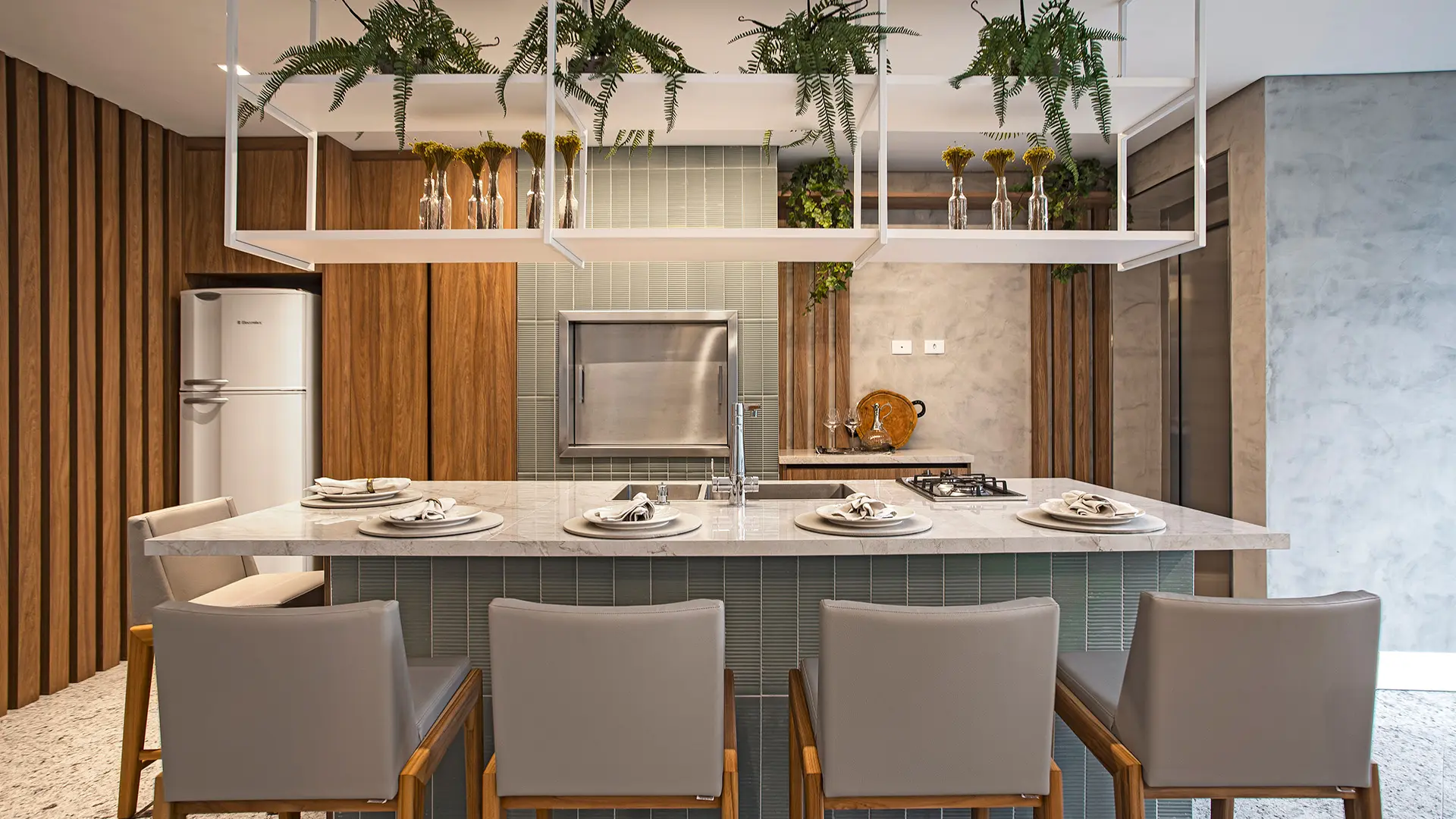 Tendências de design que o cliente gosta também precisam ser incorporadas ao projeto, mas de forma que o espaço não se torne datado rapidamente. “Escolho materiais e soluções que resistam bem ao uso e ao tempo, garantindo a longevidade do projeto”, assegura Carolina.