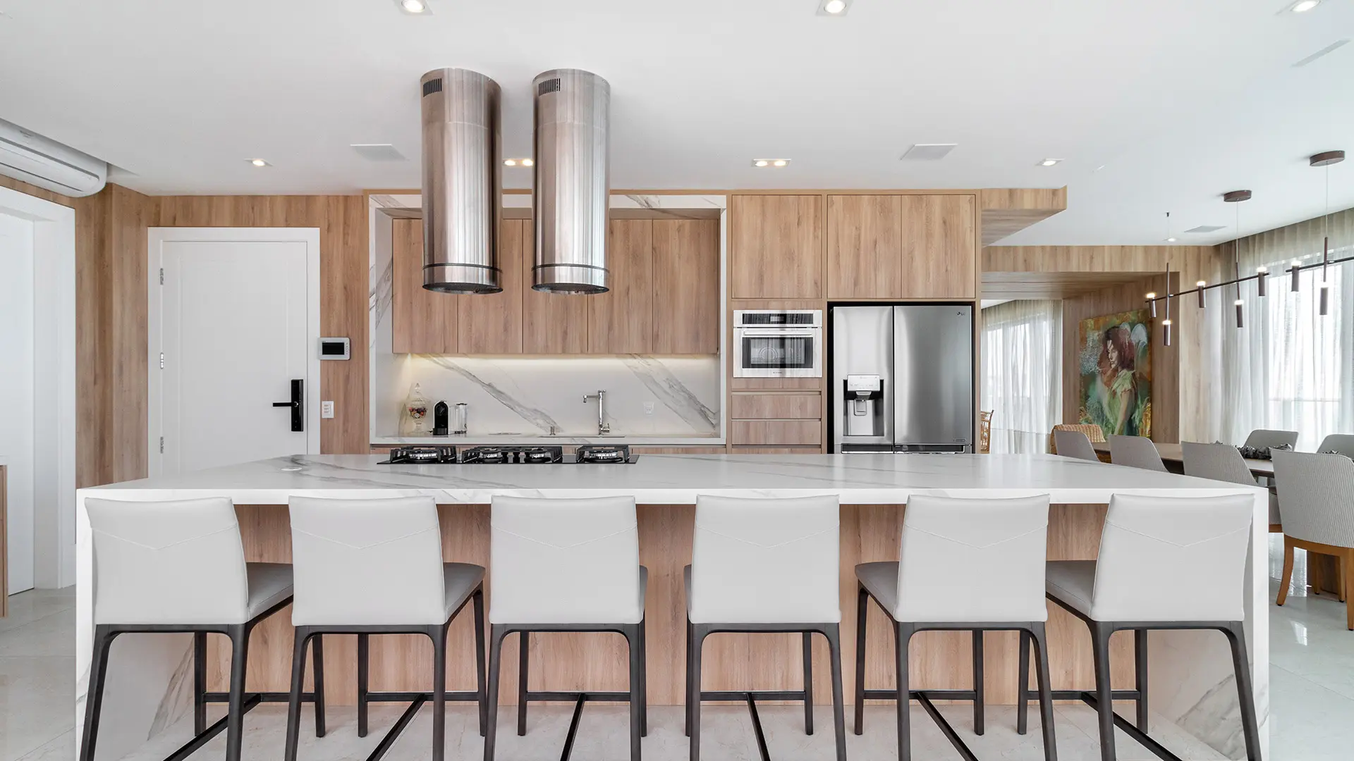 - Durabilidade: materiais de alta qualidade são mais duráveis e resistentes ao desgaste, o que é crucial para manter a elegância do ambiente ao longo do tempo. Pisos de madeira maciça, pedras naturais e superfícies de quartzo são conhecidos por sua longevidade. Criar acessos para facilitar a manutenção também é de minha suma preocupação.
