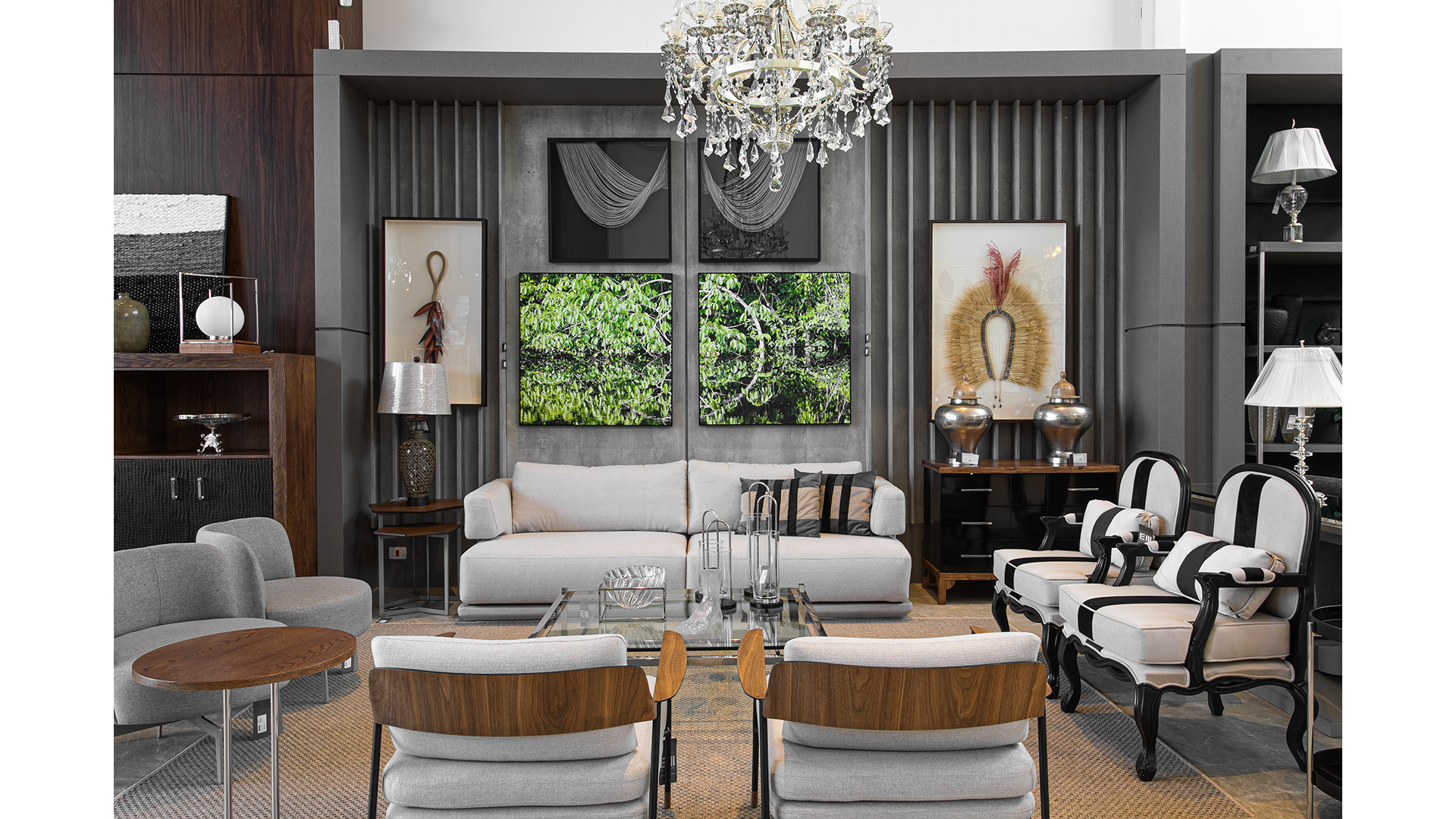 Como uma soma criativa e luxuosa do clássico ao contemporâneo, a New Modern contempla um range amplo de produtos, de painéis a mesas, poltronas, sofás, lustres, ambientes para quartos e demais elementos. Seu trabalho, sinaliza Eduardo, se completa no prazer da entrega, na satisfação de observar o cliente identificar que terá em sua casa ou escritório uma peça única, extremamente bem acabada, elaborada com um cuidado quase artesanal, e que se torna objeto de desejo.