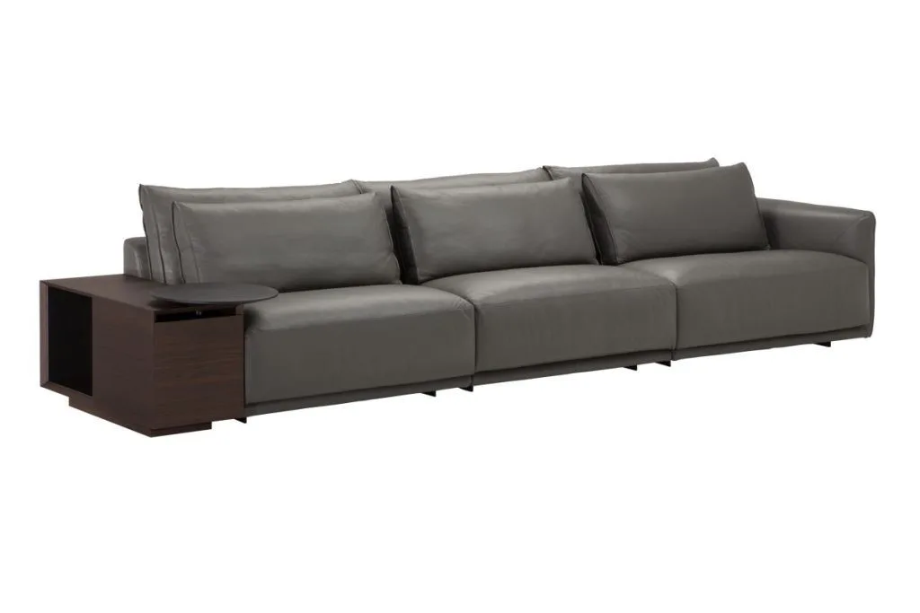 A generosidade das formas atribui um inconfundível conforto visual, confirmado pela qualidade do enchimento. Revestimento em tecido ou couro.