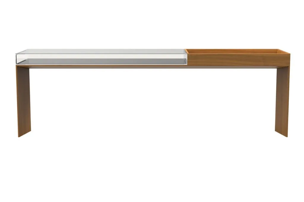 O aparador Itan é uma releitura do Aparador Adamo assinado por Larissa Diegoli. Nicho em vidro e bandeja alinhados com a simplicidade da base de desenho atemporal o tornam uma peça utilitária e de fácil ambientação, inclusive como divisória de ambientes.