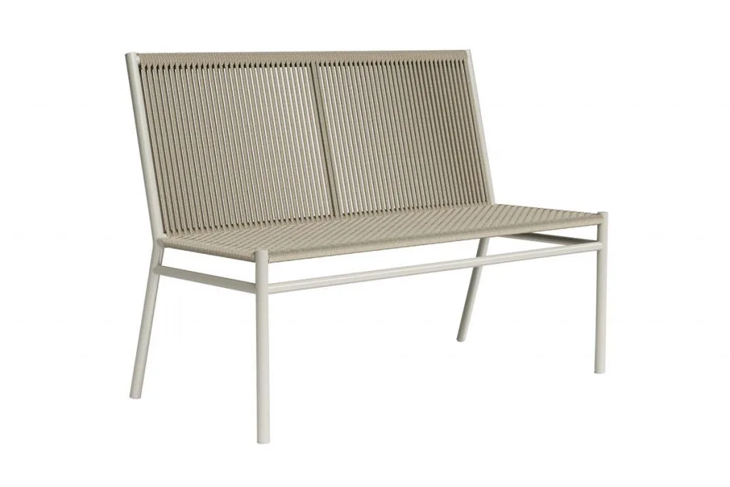Móvel com a estrutura em alumínio com cordas náuticas revestidas no assento e no encosto. Disponível também na versão com braço.
