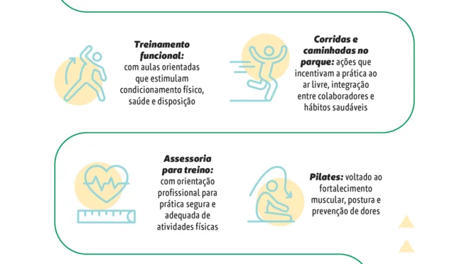 - Corridas e caminhadas no parque: ações que incentivam a prática ao ar livre, integração entre colaboradores e hábitos saudáveis;