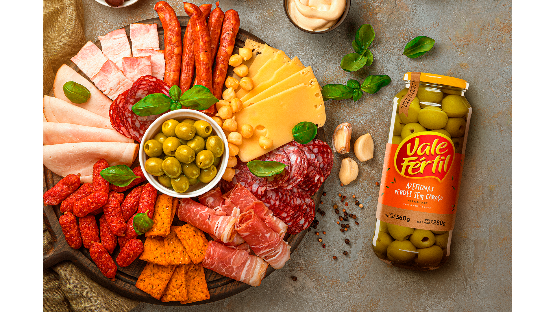 - Azeitonas: As azeitonas não podem faltar em uma tábua de frios. Guzela orienta selecionar azeitonas de tamanhos e variedades diferentes e ainda apostar em opções sem caroço, que dão um toque de requinte ao prato. “Eu gosto muito de colocar as azeitonas recheadas, pois quando você morde, o recheio explode na boca”, pontua. Algumas que ele recomenda são as azeitonas da Vale Fértil recheadas de anchova, alho, limão, queijo azul, presunto ibérico e salmão.<br />A supervisora de Qualidade e responsável técnica da Vale Fértil, Lauren Vicki, explica as diferenças entre algumas das azeitonas da marca. As azeitonas verdes com caroço Arauco, por exemplo, apresentam sabor suave, com muita polpa e são bastante suculentas. Já as azeitonas verdes gordal são frutos grandes com a polpa mais firme e ideais para petiscar. “Já para quem busca algo mais prático, existem as opções de azeitonas verdes sem caroço e a linha de recheadas especiais feitas com ingredientes naturais e sem conservantes”, destaca Lauren.