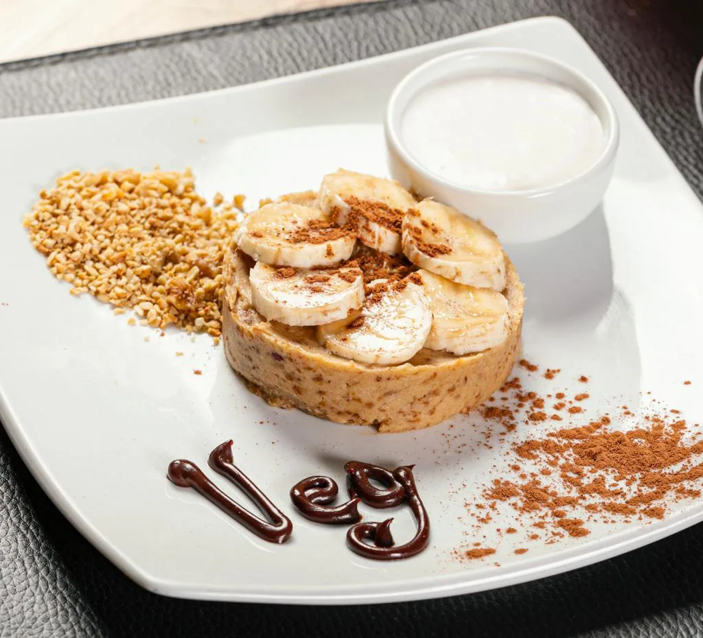 A Banoffee desconstruída é uma opção vegana feita sem açúcar, a partir de uma base de castanhas crocantes e um caramelo cremoso de leite de coco e tâmaras, acompanhado de fatias de banana fresca. Essa opção de sobremesa saudável permite que você satisfaça seu paladar sem abrir mão do sabor.