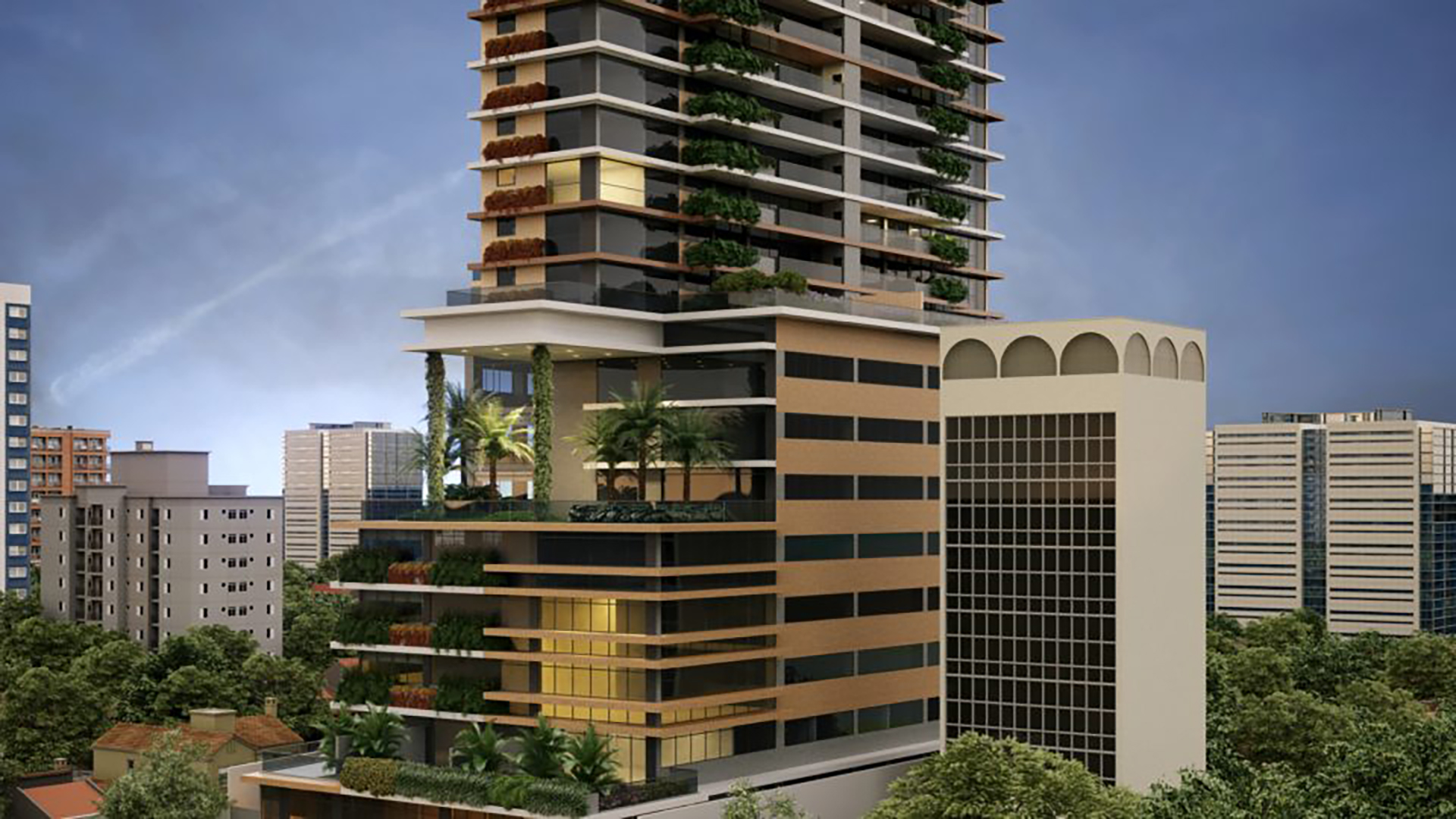 "O projeto desse prédio procura recriar a Serra do Mar na volumetria, com um embasamento maior que recebe a torre vertical habitacional a partir do 11º andar. Dessa forma, todos os apartamentos têm vista para a Serra do Mar", explica Carstens. Os apartamentos tipo tem 219m² e os Duplex têm 175 m² e 236 m². O projeto paisagístico é de Felipe Reichmann.
