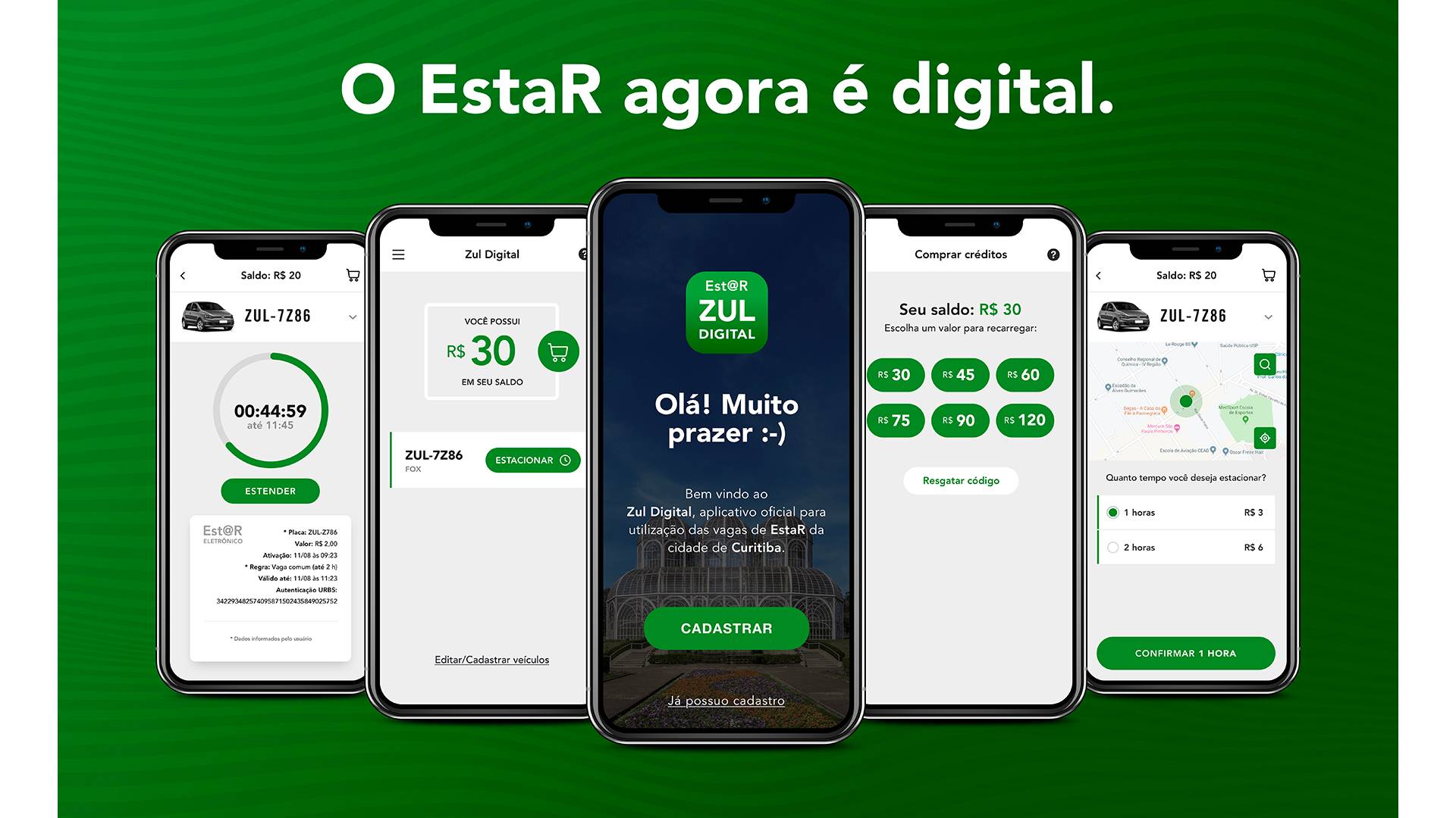 A compra e ativação do EstaR passam a ser realizadas pelo celular, sem mais precisar dos antigos talões de papel. Com o Zul EstaR Digital, o motorista curitibano pode ativar e prolongar o estacionamento em poucos instantes de onde estiver.