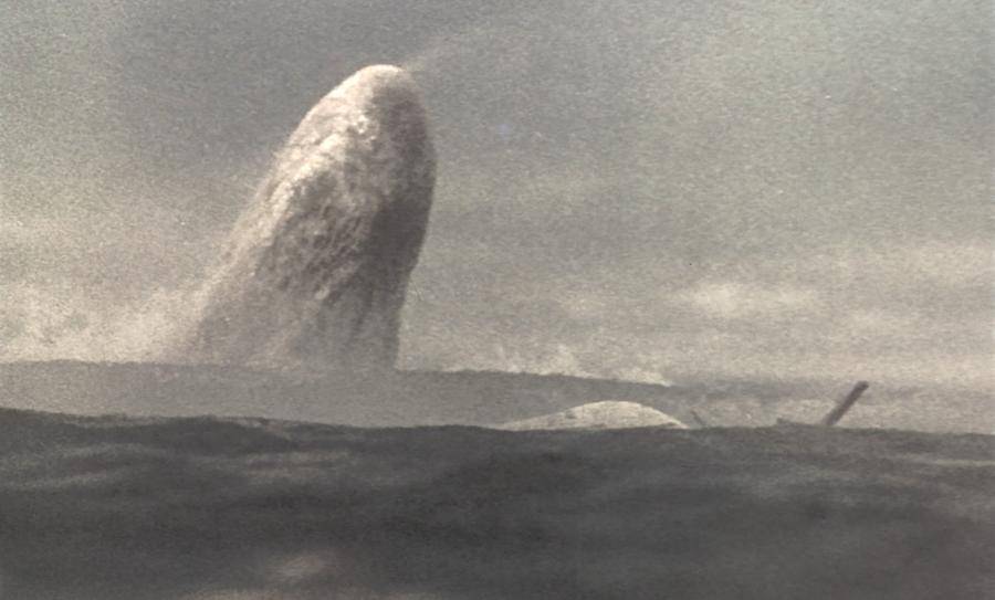 Quando Ahab afinal irrompe no tombadilho, tem “o aspecto de um homem retirado da fogueira, depois de o fogo devastar todos os membros, sem os haver consumido, nem eliminado uma só partícula de sua compacta e velha força”. Em seu olhar, há “uma infinidade de firmeza inabalável, uma vontade determinada e indomável na dedicação fixa, intrépida e atrevida”. No que diz respeito às “profundezas de Ahab, toda revelação” participa “mais de uma obscuridade significativa do que de uma claridade explicativa”, pois nem “baleia branca, nem homem, nem demônio algum pode sequer roçar o velho Ahab em seu ser real e inacessível”. A exemplo da baleia, não? Duas sombras, portanto: uma negra, outra branca.