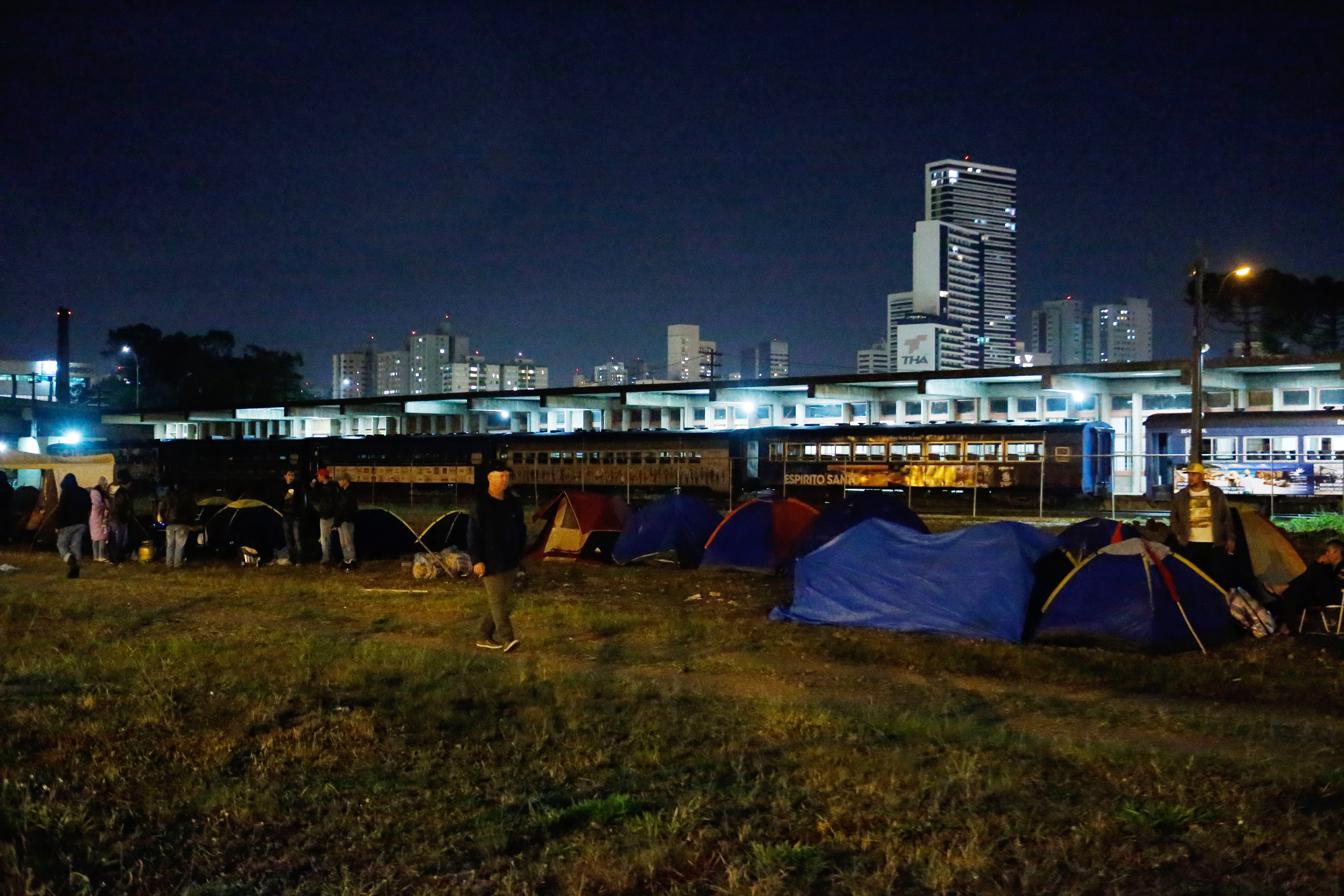 Manifestantes favoráveis ao ex-presidente Lula montaram um acampamento em um terreno ao lado da Rodoferroviária de Curitiba, na região central, nesta segunda-feira (8). Já havia movimentação no local por volta das 22h45. A maior parte dos integrantes presentes no espaço nesta noite era de integrantes do Movimento dos Trabalhadores Sem-Terra (MST) do Paraná.