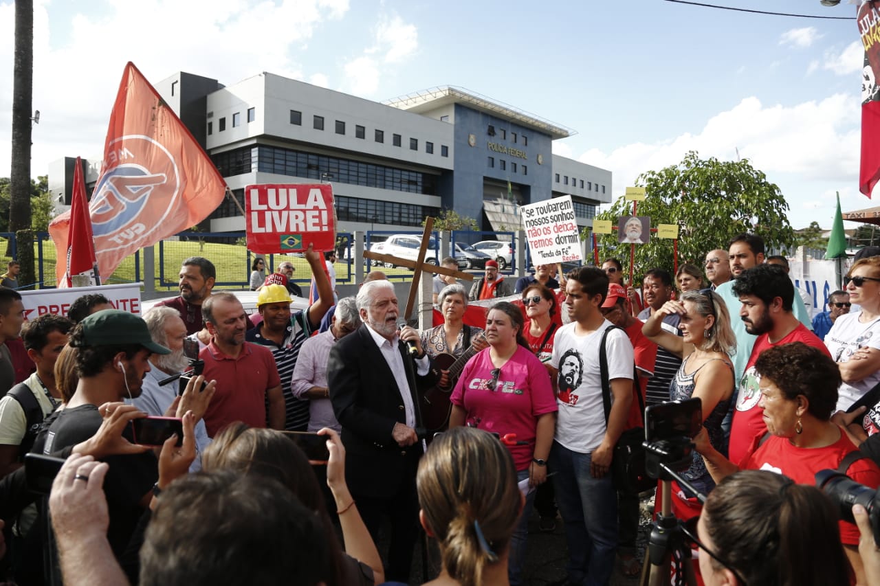 Apenas uma viatura da Polícia Militar se manteve na região durante o protesto, e a reportagem não identificou a presença de manifestantes contrários ao ex-presidente. Além dos senadores da Bahia (Wagner) e de Pernambuco(Costa), o ato teve fala de Dr. Rosinha, ex-deputado pelo PT no Paraná. Rosinha mencionou o que considera como uma ditadura do Poder Judiciário no Brasil: “Se fosse democracia, não precisaríamos que uma professora da UnB pedisse exílio após escrever uma tese pelos direitos das mulheres”, afirmou, em referência a um caso.