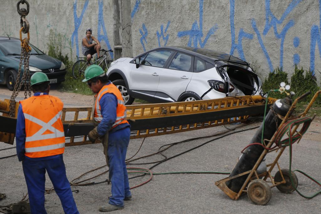 Segundo informações da concessionária Ecovia, que administra o trecho, o equipamento estava sendo utilizado na instalação de uma passarela, quando caiu sobre o veículo Captur, estacionado à beira da pista sentido litoral.