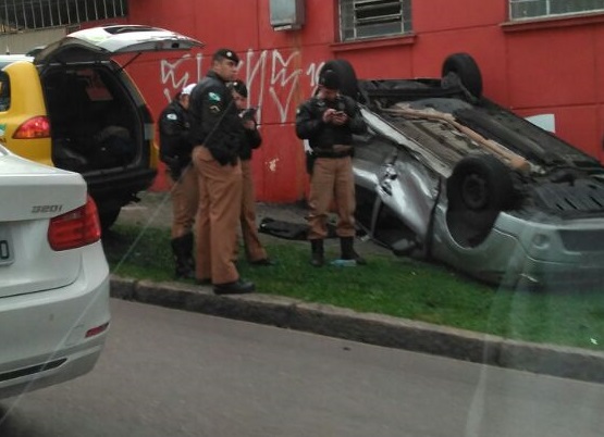 Uma colisão entre dois carros seguida de capotamento deixou duas pessoas feridas na manhã desta segunda-feira (12), no bairro Água Verde, em Curitiba. De acordo com o Batalhão de Polícia de Trânsito (BPTran), o acidente ocorreu na Avenida Presidente Getúlio Vargas, quase esquina com a Rua Coronel Dulcídio, por volta das 8 horas.