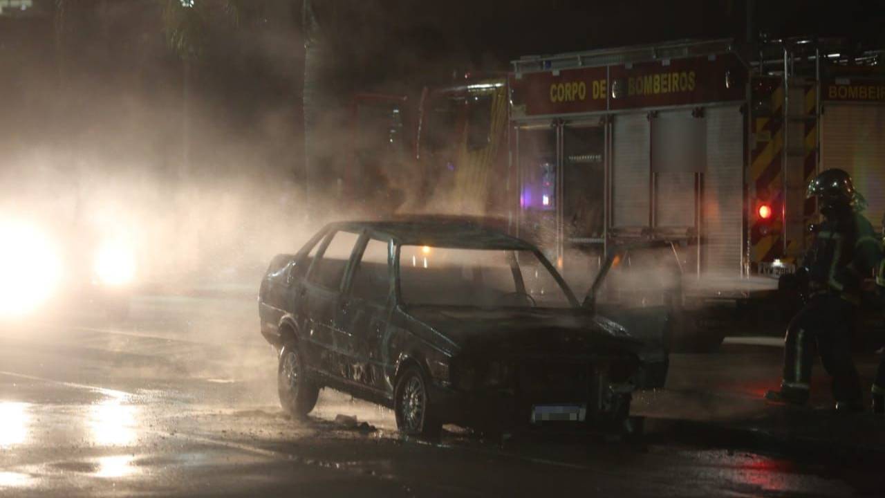 Um carro pegou fogo na noite de segunda-feira (5) na Avenida Afonso Camargo, bem próximo ao Hospital Cajuru, no bairro Cristo Rei, em Curitiba. O veículo, um Fiat Prêmio, estava estacionado ao lado da canaleta de ônibus e o Corpo de Bombeiros teve trabalho para apagar o incêndio.