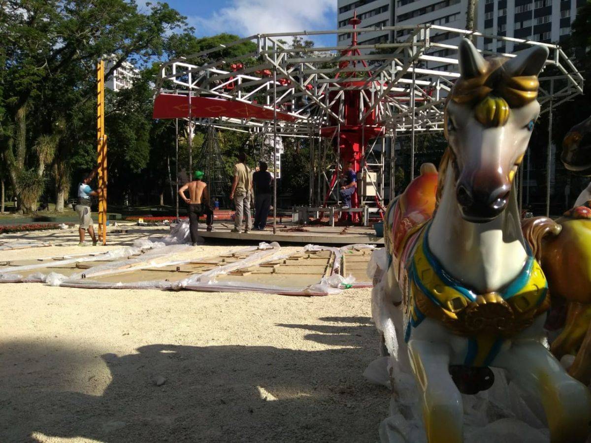 Principal novidade do Natal de Curitiba de 2019, o carrossel do Passeio Público já está sendo montado e vai funcionar a partir de domingo (24) – a atração será gratuita. O brinquedo estilo veneziano é uma das 130 atrações da programação natalina da prefeitura que começa sexta-feira (22), com a iluminação de 25 árvores de Natal distribuídas em parques e praças. A estrutura, com 34 cavalinhos e 4 xícaras malucas, vai funcionar das 12h às 20h, até 6 de janeiro.